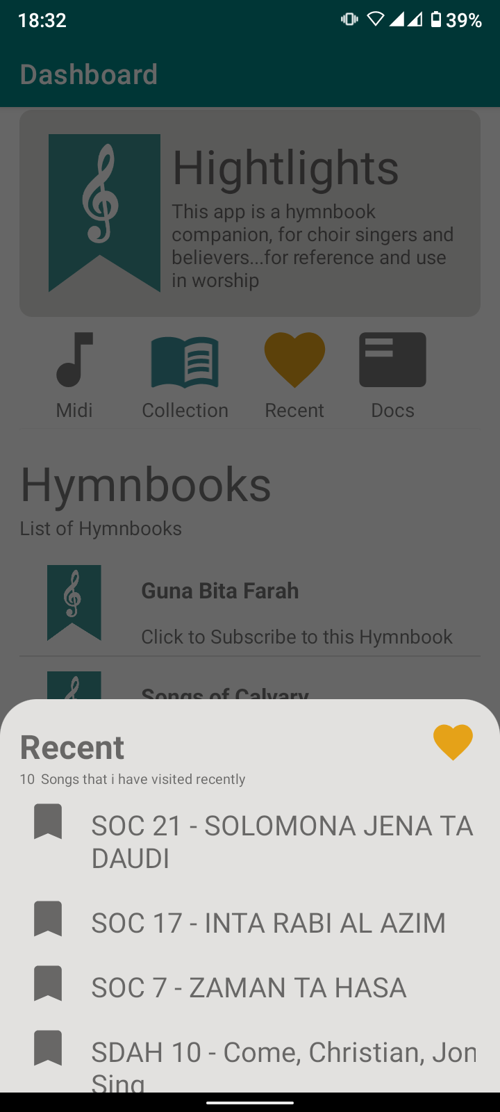 The app is a one-in-all hymnbook that store all your songbook in one app. The app includes songbooks commonly used in South Sudan and has the capacity to accommodate all the dialect and local language songbooks of tribes in South Sudan in the nearest future.