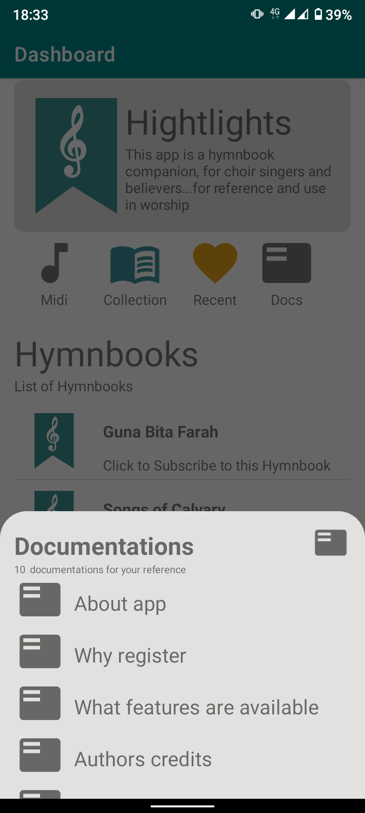 The app will have more than 1 hymnbook that you can swiftly change at your convinence. Singing groups would not need to print their composed songs for their choirs, as all registered users or choir members can able to get instant update of any new song added to the hymnbook, any correction done by authorized personnel will reflect in the hymnbook for choirs and singing groups by their Admin.
